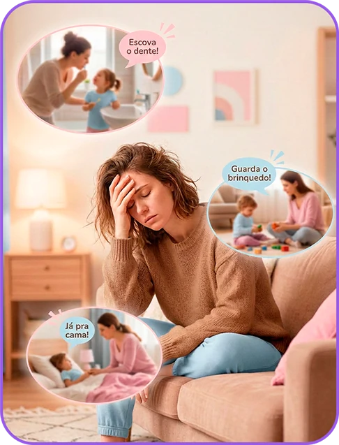 OPÇÃO 1: Continuar repetindo as mesmas coisas 47 vezes por dia, se sentindo exausta e culpada por gritar…